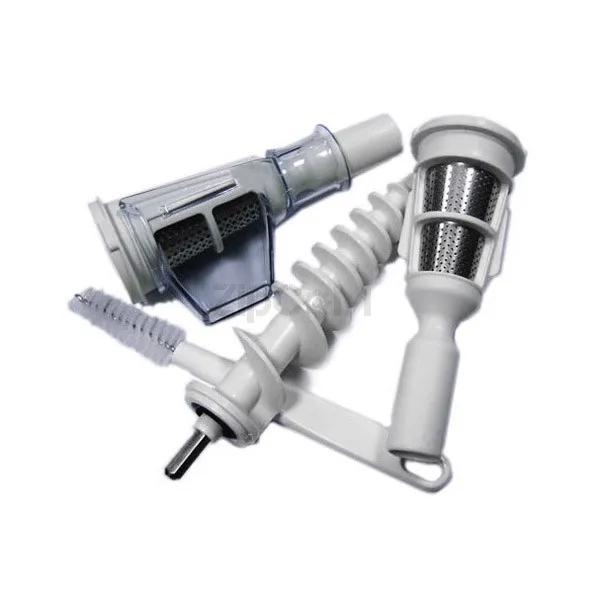 В комплект входит: шнек-волна 197 мм., две насадки для выжимания сока, держатель насадок, щеточка для чистки.
